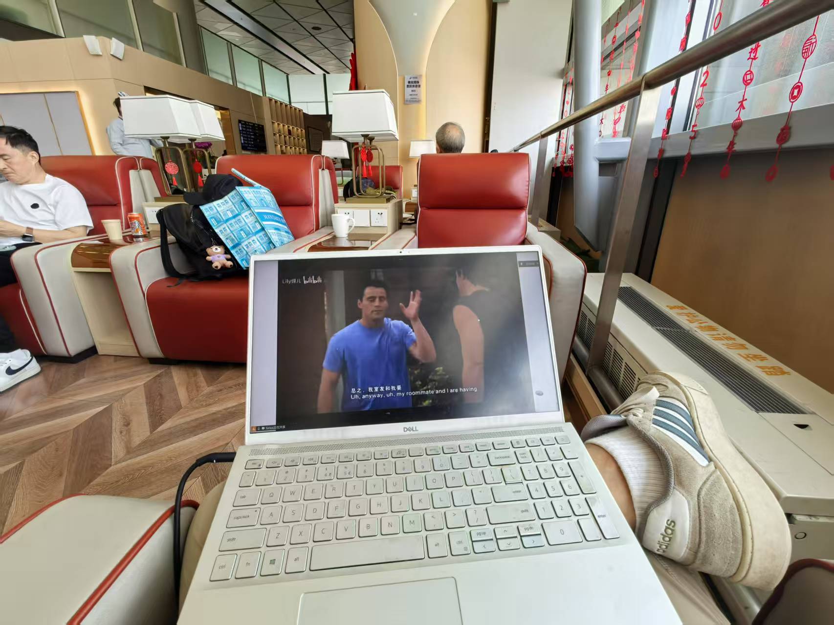 尝试一下贵宾厅的休息室,算是新的体验了。可以很舒服的候机,看Joyee哈哈。
