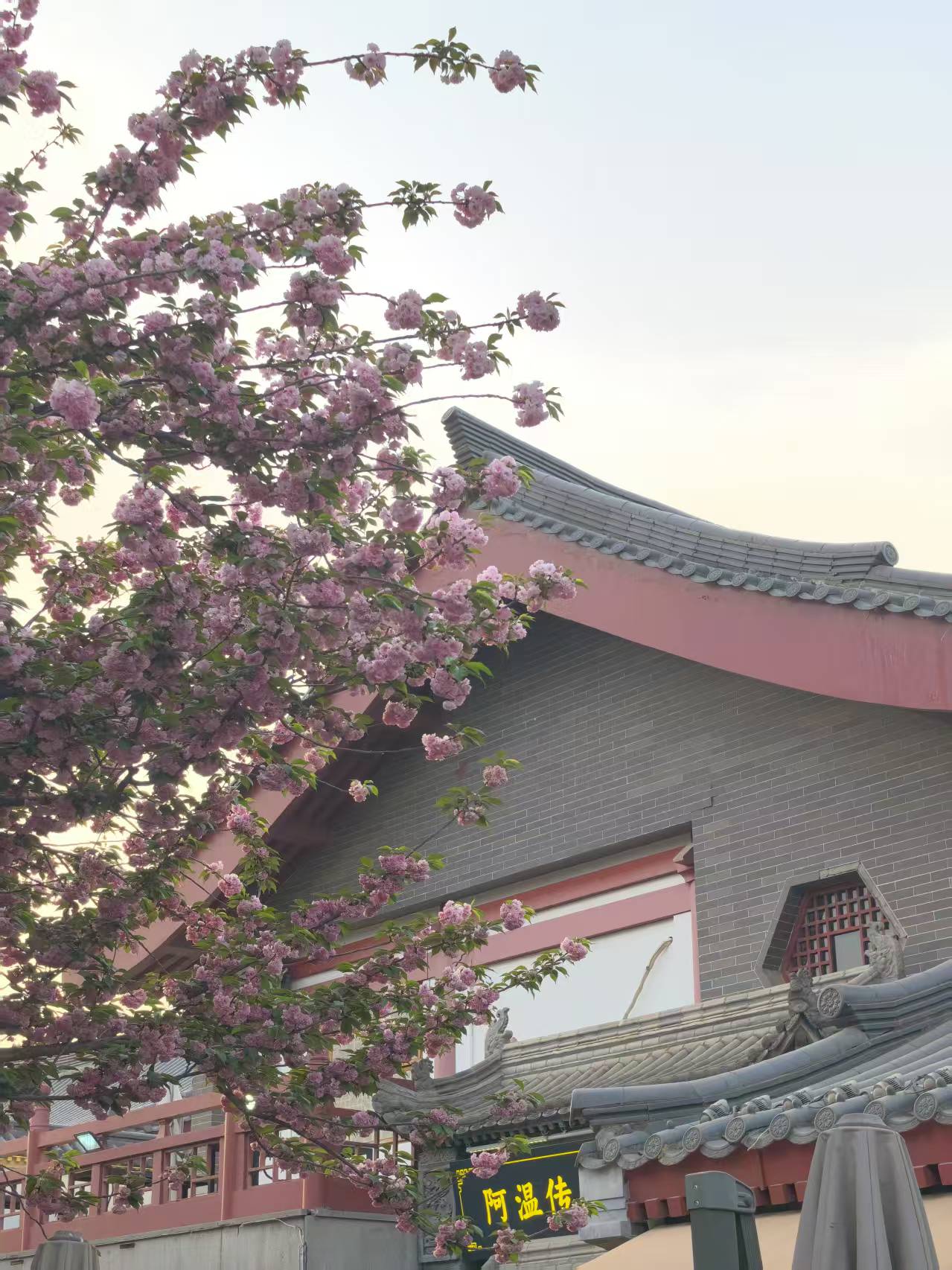 芙蓉园外的樱花比学校美,很喜欢在古建筑旁的各种植物。仿佛天生就该是在一起的。