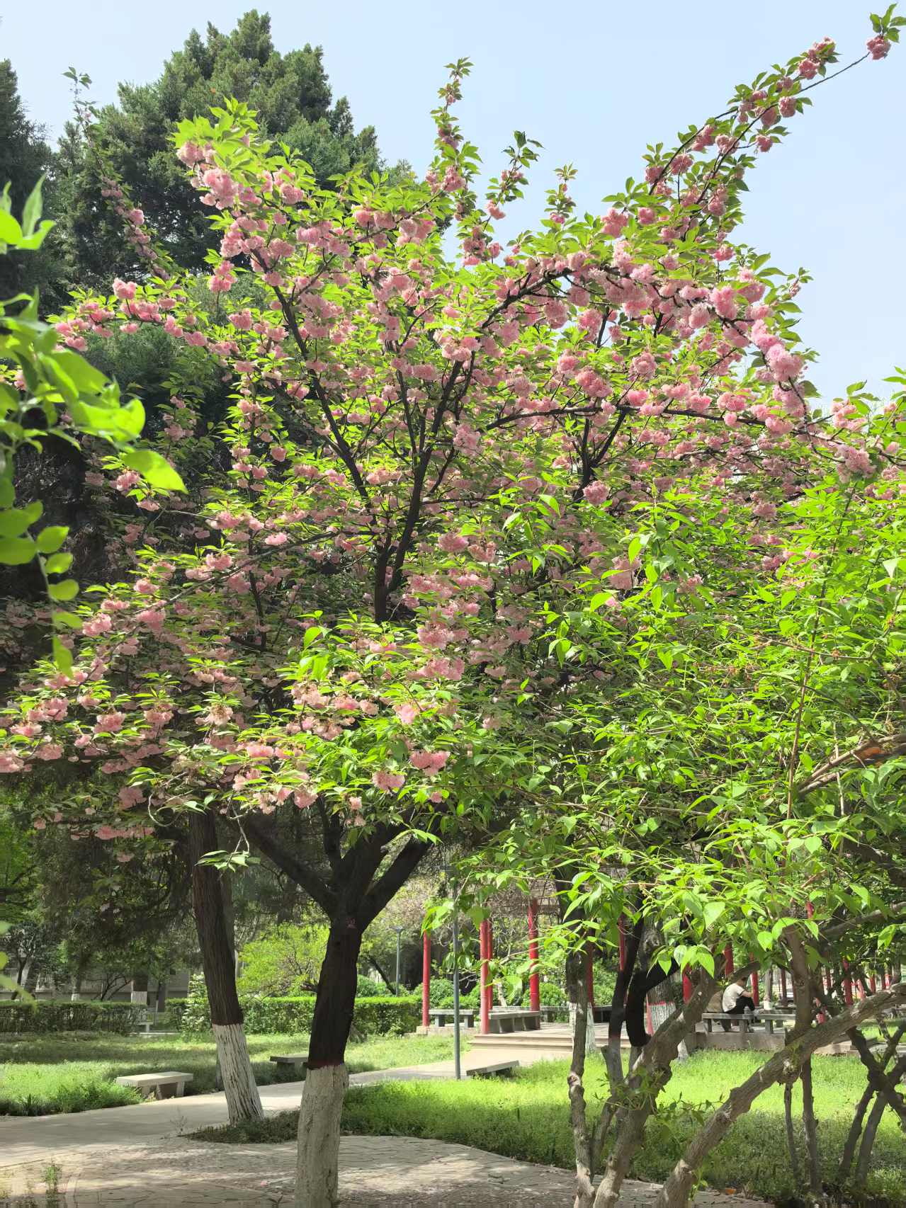 查了一下,这个叫日本晚樱。走在西电的南校区,骑着车真的很惬意。